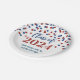 Classe de fête de graduation personnalisable de 2024 assiettes en rouge blanc et bleu confetti motif et élégant texte de style lettré à la main.