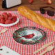 Beautiful watercolor illustration of a red cardinal perched on evergreen branches with holly berries. Set against a snowy forest and framed by a classic red and black buffalo plaid pattern, this cozy winter design captures the warmth and charm of the season.
