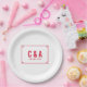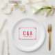 Plaques de papier Mariage simple et minimaliste Déco chic avec une bordure décorative d'art rouge moderne. Ces assiettes classiques et élégantes sont faciles à customiser avec vos détails mariages. Pour plus d'options de personnalisation, cliquez sur Personnaliser.