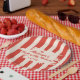 Assiettes En Carton Red Stripe Blanc & Bleu Nom de famille Barbecue