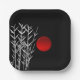 Red sun black white zen Bamboo trees and red sun in black zen circle hand-drawn with ink in traditional Japanese painting