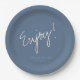 Cet ensemble mariage moderne a une atmosphère chaleureuse et personnelle et de nombreuses pièces présentent un design abstrait et aquarelle ressemblant à des reflets sur l'eau. Cette plaque de papier de coordination a une couleur solide arrière - plan de bleu foncé poussiéreux, la calligraphie frappante de 'Enjoy' avec vos noms et votre date mariage. Recherchez ID774 pour voir l'ensemble complet des produits correspondants et des options de couleur supplémentaires pour cette conception.