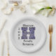 Créez des plaques en papier uniques pour votre prochaine réunion de famille avec ces plaques monogrammes de nom de famille qui vous aideront à faire le ménage après votre grand dîner familial ou pique-nique annuel un coup. La belle lettre H monogramme présente un design en mosaïque ou en vitrail dans des couleurs violet, bleu et noir contre un arrière - plan gris clair qui peut être customisé si vous le désirez. Personnalisez rapidement avec le nom de votre famille et l'année pour créer une belle plaque en papier pour votre prochain événement.