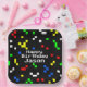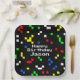 Classic video game fans will love this fun, retro style 8-bit graphics pattern in bright colors! The simple, square shapes stand out on a black background. Offered here on custom paper party plates. It's a fun and unique pixel art design for any gamer. Personalize these plates with a name or any text. Great for a birthday party or any occasion. Check out the entire custom collection of gift wrapping and party supplies!