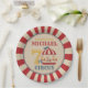 Venez un, venez tous ! Complétez votre décor à la plus grande fête d'anniversaire sous le grand toit avec nos modèles de plaques de carnaval de cirque. Cette plaque de fête de carnaval de cirque présente un carrousel rouge et bleu vintage avec un arrière - plan de grande tente rouge sur une plaque de fête.