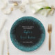 Ajoutez une touche de classe à votre table de fête avec ces Plaques de papier chic qui comporte de belles parties scintillant en faux bleu Turquoise aux bords d'un arrière - plan noir. Tout le texte peut être personnalisé pour répondre à vos propres besoins et d'autres articles correspondants peuvent être trouvés dans mon magasin (Invitations, Cartes de Remerciements, etc.).
