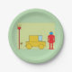 Un robot à l'allure rétro se tenant à côté d'une voiture jaune. Cette conception semble vraiment efficace sur ces Plaques de papier