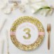 Le rose et plats d'anniversaire d'or les troisième sont scintillants et très jolis. Ils ont un arrière - plan scintillant d'or avec des accents roses et un grand "3" au milieu avec la pièce d'ajouter le nom de votre enfant.