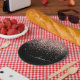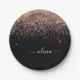Assiettes En Carton Rose Gold - Rose Pâle Noir Paillettes Monogramme N
