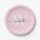 Assiettes En Carton Rose Pâle Moderne Monogramme Personnalisé avec Nom