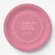 Parfait pour les mariages printaniers ou estivaux dans un jardin, ce design élégant présente une bordure ondulée en coquille de Saint-Jacques sur un fond rose vif. Personnalisez ces assiettes de mariage avec le nom de votre événement, la date et l'année.