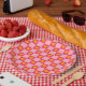 Assiettes En Carton Rose rouge jaune coeur amour À damiers Y2K Motif