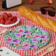 Plaques de papier fête d'anniversaire rose, vert et violet motif floral.