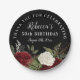 Roses rouges et blancs personnalisés sur Arrière - plan noir Cinquantième anniversaire Plaques papier de fête - Ajoutez votre nom, l'âge célébré et la date de la fête d'anniversaire. Un design moderne qui associe une police décorative audacieuse avec de la calligraphie manuscrite et est complété par un graphique rouge rose floral.