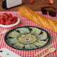 Une rosette architecturale de la Renaissance, colorée à la main. Ce sont, et sont encore, des ornements architecturaux populaires.