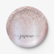 Assiettes en papier personnalisées avec monogramme et nom en écriture script métallisé rose gold pailleté Girly Glam. Ce design présentant votre prénom dans une jolie typographie calligraphiée avec empattements (ou calligraphie) sur un faux papier métallisé rose gold pailleté avec une bordure glamour à paillettes. Celles-ci sont faciles à personnaliser. Idéal pour une pendaison de crémaillère, également pour un anniversaire, un mariage, un anniversaire de 16 ans, une soirée de mariage, une soirée entre filles, une fête de fin d'études, une baby shower et c'est pour la fille qui aime les choses uniques et élégantes avec des paillettes.