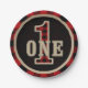Assiettes En Carton Rouge rustique Buffle Noir Plaid 1ère fête d'anniv