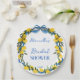 Modèle de plaques en papier personnalisées pour douche de mariée coquette rubans à nœud bleu citrons, modèle de plaques en papier monogrammé pour douche de mariée citrons bleus et jaunes; plaques de fête pour douche de mariée estivale, décor de table personnalisé aux citrons italiens