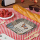 Saddle-up et galop-over pour une fête d'anniversaire amusante à cheval. Un arrière - plan en planches de bois suggère l'intérieur d'une écurie avec un panneau tenu par des bracelets. Le panneau crème est muni d'un cheval monté pour accueillir les clients dans une journée amusante avec des chevaux. Une paire de bottes de cowboy et un casquette de cowboy sont placés au fond de l'assiette, avec des ornements de style occidental qui accusent le design. Disponible avec des produits correspondants.