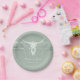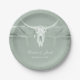 Rustique pastel sauge vert blanc rustique bull crâne de vache pays western cowboy mariage dîner assiettes de réception. Vintage ferme moderne inspirée de la texture en mauvais état imprimé. Ancien style sauvage ouest antique. Cool, design animal de ferme tendance. Customisez votre typographie. Copyright de l'image Marg Seregelyi Photography.