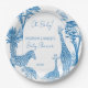 Assiettes En Carton Safari bleu toile girafe baby shower monogrammé