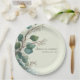 An elegant sage green eucalyptus paper plate featuring boho watercolor greenery perfect for wedding and baby shower celebrations.