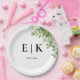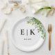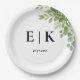 Assiettes En Carton Sage Green Feuille Verdure Monogramme Mariage