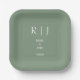 Assiettes En Carton Sage Green Monogrammes Minimal Moderne Simple Mari