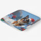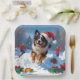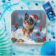 Illustration de vacances pleine de charme avec un chien gai jouant dans la neige, portant un chapeau de Père Noël et entouré de boîtes cadeaux colorées. Dans l'arrière - plan, les enfants construisent un bonhomme de neige à côté d'un sapin de Noël enneigé, créant un merveilleux pays hivernal. Parfait pour répandre la joie des fêtes et capturer la magie de Noël.