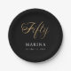 Assiettes En Carton Script de nom en or noir 50e anniversaire