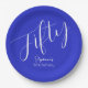 Assiettes En Carton Script simple moderne Royal Blue 50th Birthday