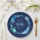 Un plat de fête pour une fête sous la mer avec des créatures marines peintes à la main comme, des baleines, des chevaux de mer, des raies piquantes, méduses, crabes, tortues de mer et plus sur un arrière - plan bleu marine foncé ! Vous pouvez customiser le nom et l'âge. Voir l'ensemble de la collection de fêtes de correspondance.