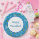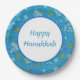 Ensemble de huit plaques en papier de 9" avec une image de dreidels tournants, menorahs en or éclairé, et pièces en or sur le bleu, et un centre blanc optionnel avec une bordure bleue et un sentiment de vacances personnalisable. Voir tasse assortie, carreaux de céramique carré et dessous de verre. Voir la collection Hanoukka Plate dans sa catégorie HOME dans la section HOLIDAYS.