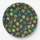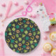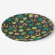 Les assiettes de fête à motifs de la Saint-Patrick dans le vert festif, l'orange, le jaune et le noir sont un motif amusant et fou de quatre shamrocks de trèfle en feuilles, des charpentiers chanceux, des casquettes de léprechaun, de la bière verte et des baisers irlandais orange. Un compliment parfait à votre boeuf et chou corned aux fêtes de St Paddy's Day!