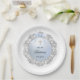 Assiettes En Carton Silver Glitter Frame Blue Bow Baptism