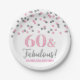 60 et fabuleuses assiettes de fête d'anniversaire avec confettis motif argent et parties scintillant rose.