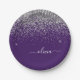 Assiettes En Carton Silver Purple Parties scintillant Girl Monogramme