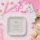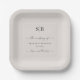 Assiettes En Carton Simple Monogramme de Mariage Écru Blanc Uni