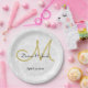 Assiettes En Carton Simple or blanc noir élégant mariage Monogramme