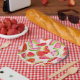 Juicy watermelons create a playful background for this summer-inspired watercolor design.
