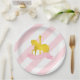 Les assiettes adorables de fête d'anniversaire comportent une jolie illustration d'un cheval de carrousel sur un arrière - plan rayé et peuvent être personnalisées avec le nom ou le message de votre enfant de votre choix.