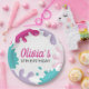 assiettes de fête d'anniversaire rose, violet et turquoise.