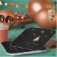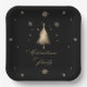 Élégante Plaques en papier de Noël Noir Or, conçues avec un arbre de Noël de couleur or, des flocons de neige et du texte sur un arrière - plan noir. Le texte comprend : Fête de Noël. N'oubliez pas de consulter les serviettes en papier Elegant Gold Black Christmas Party Invitation et Holiday Party.