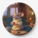 Une mignonne petite souris boit du thé près d'un sapin de Noël. Une assiette pour vos fêtes de Noël ! Recherchez les articles correspondants dans mon magasin.