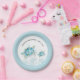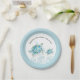 De mignons assiettes personnalisées pour votre baby shower à thème sous la mer disposent d'une bordure bleu bébé, avec mon unique aquarelle peinte à la main tortue de mer et corail au centre. Personnalisez-vous avec le nom et la date de la douche de la maman. Parfait comme décor de baby shower, pour grignoter et voir, fête d'anniversaire d'enfant ou de billard. Objets correspondants disponibles sur www.zazzle.com/vginvites!