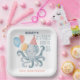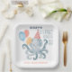 Sous le thème de la mer, les plaques de papier d'anniversaire comprennent une pieuvre mignonne avec ballons et casquette de fête. Parfait pour les célébrations nautiques, côtières et de plage et les couleurs estivales sont parfaites pour une fille ou un garçon. Art par KL Stock