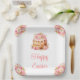 Pretty Easter plates with a cake decorated in frosting and flowers. The words can be changed to suit your own details or requirements.