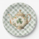 These whimsical St Patrick's Day paper plates features a watercolor Clover Tea Pot with a coordinating green and white gingham background.