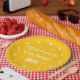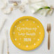 Ring in the New Year with style! This festive paper plate features a bright yellow background adorned with white stars — some carefully placed to mark the positions of clock numbers, symbolizing the countdown to midnight. At the center, a beautiful Armenian inscription reads “Happy New Year 2026.”
