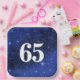 Des étoiles brillantes dans un motif étoilé de galaxie bleue pour la fête du 65e anniversaire. L'âge peut être changé.